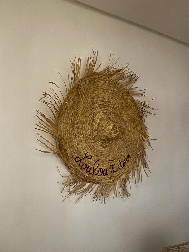 Fransiger Wand-Strohhut – Personalisierbar, Boho Wanddeko aus Marokko