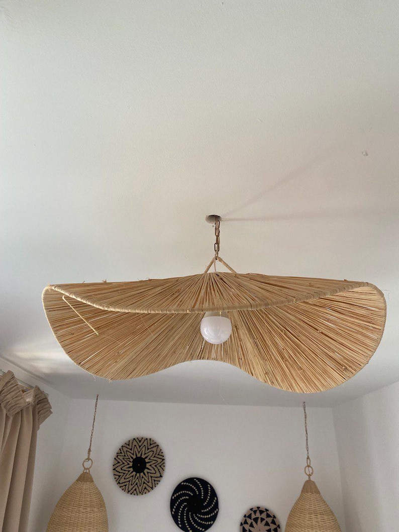 Handgefertigte Raffia-Pendelleuchte – marokkanischer Parasol-Lampenschirm