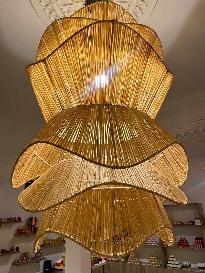 Handgefertigte Raffia-Pendelleuchte – marokkanischer Parasol-Lampenschirm