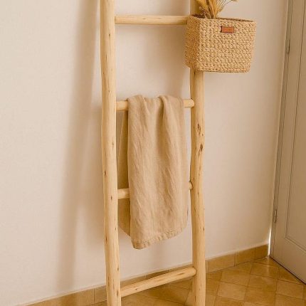 Dekorative Holzleiter als Handtuchhalter – Natürliche Boho Deko