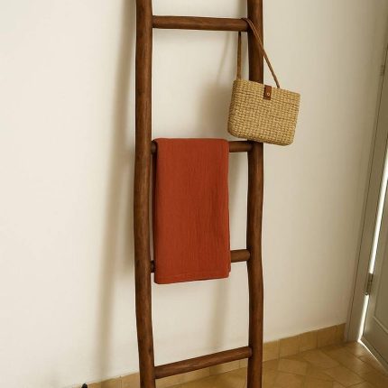 Dekorative Holzleiter als Handtuchhalter – Boho Bad & Wohn-Deko