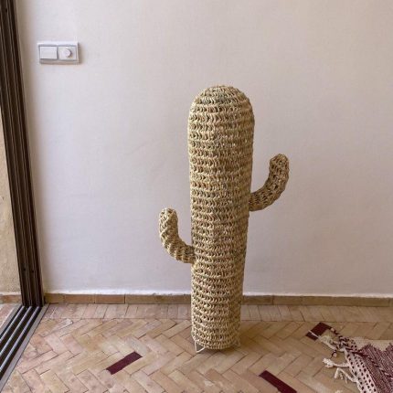 Doum Kaktus aus Geflochtenem Stroh mit Ständer – Natürliche Boho Deko
