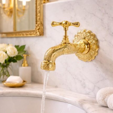 Antique Brass Wall Mount Faucet – Engraved Moroccan Tap