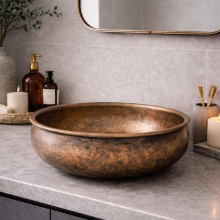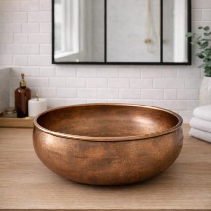 Antikes Kupfer Rundes Aufsatzwaschbecken – Rustikale Patina Waschschale