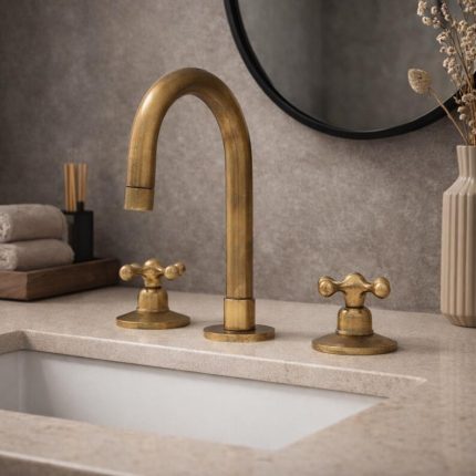 Antikes Messing 3-Loch Waschtischarmatur – Widespread Wasserhahn mit Kreuzgriffen