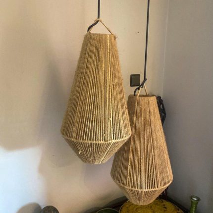 Set aus 2 handgeflochtenen Kordel-Pendelleuchten – konische Form