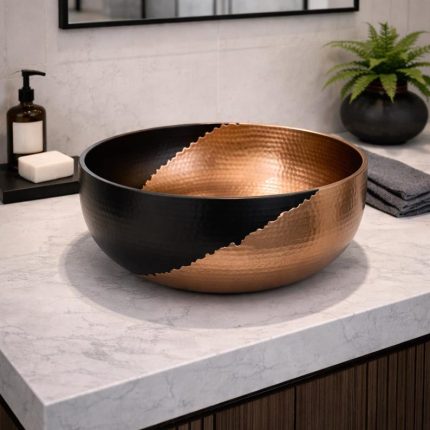 Schwarz-Kupfer Gehämmerte Aufsatzschale – Moderne Runde Waschbecken-Schüssel
