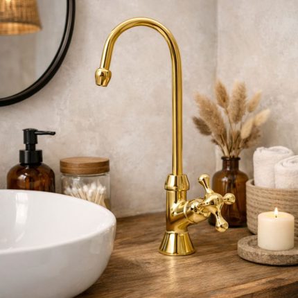 Vintage Polierte Messing-Waschtischarmatur – Kreuzgriff Schwanenhals-Wasserhahn