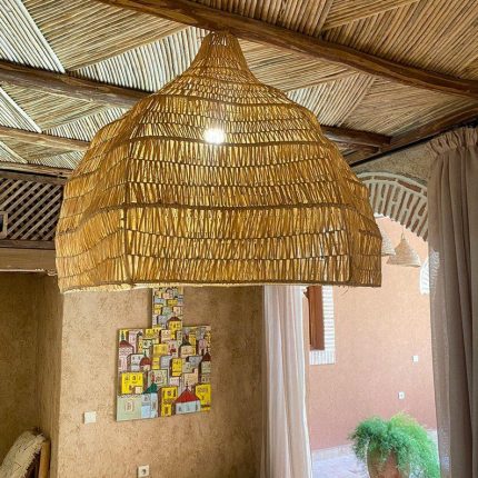 Übergroße sechseckige Pendelleuchte – handgeflochtenes marokkanisches Design