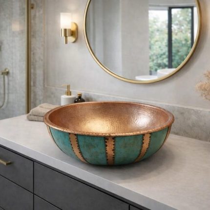 Türkise Patina Kupfer Aufsatzschale – Gehämmerte Waschbecken-Schüssel