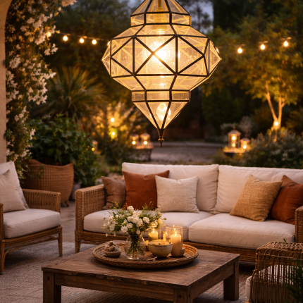 Geometrische Marokkanische Hängelampe – Deckenleuchte aus Glas & Metall