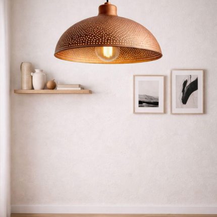 Gehämmerte Messing Pendelleuchte mit Braun Patina – Dome Lampe im Vintage Look