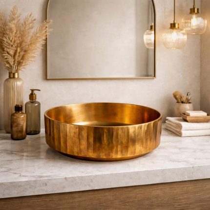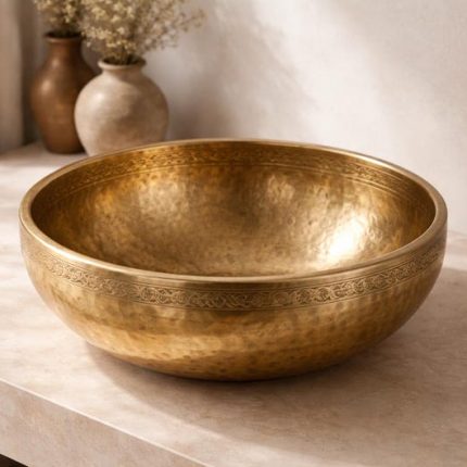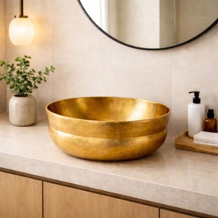 Gehämmertes Messing Rundes Aufsatzwaschbecken – Goldene Waschschale fürs Bad