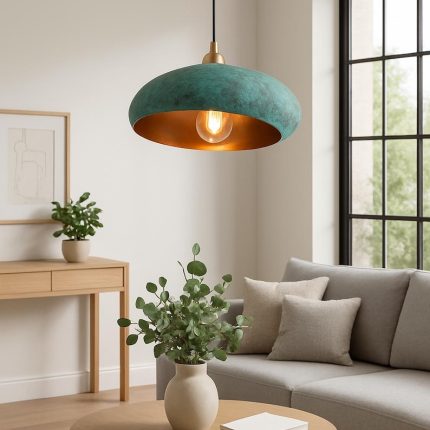 Handgefertigte Gealterte Kupfer Dome Pendelleuchte – Patina Look, Schnelle Lieferung