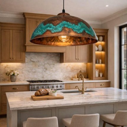 Handgefertigte Gealterte Kupfer Dome Pendelleuchte – Warme Patina, Kücheninsel & Esstisch