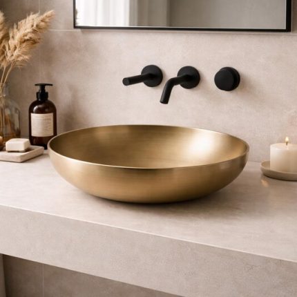 Handgefertigtes Gehämmerte Kupfer Ovales Aufsatzwaschbecken – Antikgold Finish